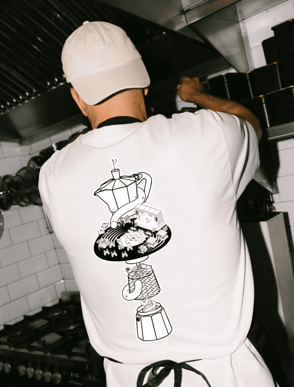 A identidade visual da White Coffee Agency nasce da união de dois símbolos improváveis: uma cafeteira e um disco de vinil.